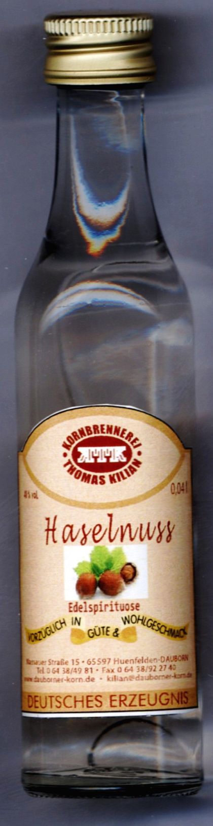 Number of Firm.: 20181450 _____Bottle Nr. : 0241530 _NAME : Haselnuss Menge: 0,04l _ ALK: 40% vol INFO.: YEAR / Buying : (S1-X) - (S2-?) - (S3-?)