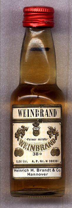 11254000 _____Bottle Nr. : 0541840 _Inhalt: WEINBRAND Menge: 0,04 Ltr. __ALK: 38° INFO.: A.P.Nr. N 080381 INFO.: INFO.: YEAR / Buying : ______GRÖßE [SIZE] : 10,90cm [PRICE] (V/5) __Kategorie: |