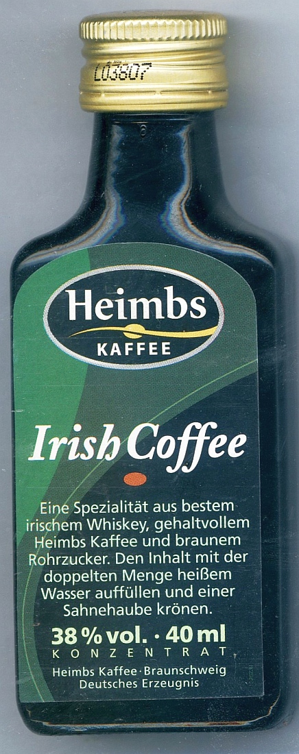 Number of Firm.: 17141200 _____Bottle Nr. : 0192950 _Inhalt: IRISH COFFEE Menge: 40ml _ ALK: 38% vol INFO.: INFO.: INFO.: YEAR / Buying : ______GRÖßE [SIZE] : [PRICE] __KAT1: (S1-77-0) - (S2-?) |