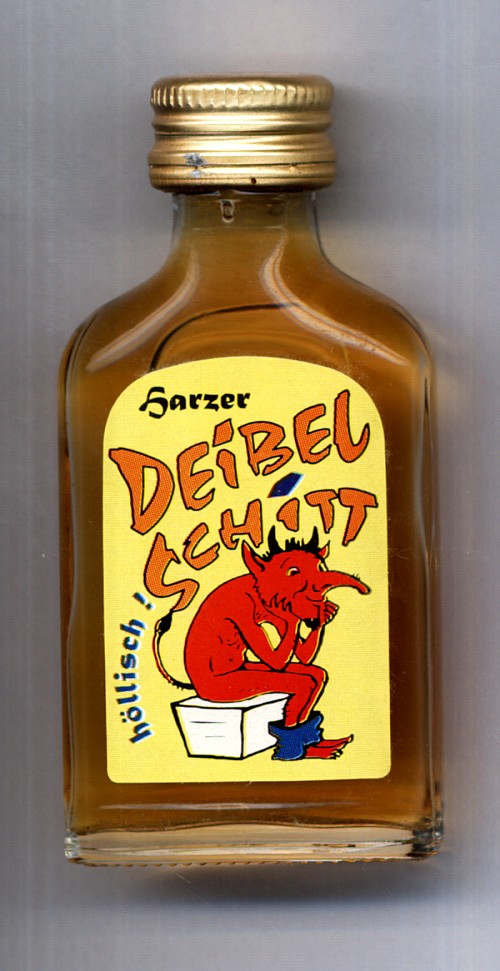 Firmenr.: 17302000 Flaschennr.: 0131450 Inhalt: DEIBEL SCHITT Menge: 0,02l ALK: 30% vol Bemerkungen: Kräuterlikör Bemerkungen: harzer höllisch Anmerkungen: YEAR / Produktion: 1998 GRÖßE [WERT] (X)