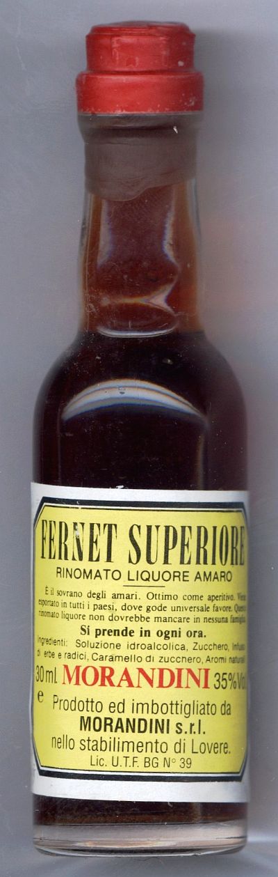 22245250 _____Bottle Nr. : 0201830 _Inhalt: FERNET SUPERIOR Menge: c.c. 25 _ ALK: GR. 42 INFO.: INFO.: YEAR / Buying : ______GRÖßE [SIZE] : [PRICE] __KAT1: (X) |