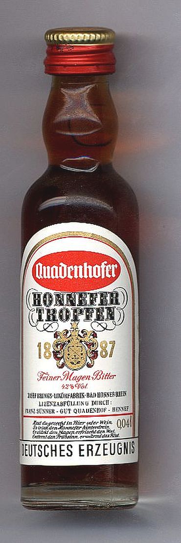 28307000 _____Bottle Nr. : 0243850 _Inhalt: HONNEFER TROPFEN Menge: 0,04l __ALK: 42% Vol INFO.: INFO.: INFO.: YEAR / Buying : ______GRÖßE [SIZE] : (S1-X) - (S2-?) - (S3-?) |