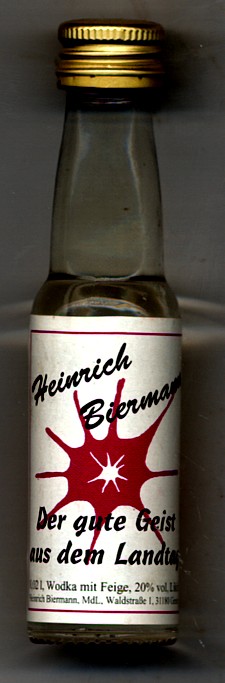 11181272 _____Bottle Nr. : 0241830 _Inhalt: Heinrich Biermann Menge: 0,02L __ALK: 20% vol INFO.: INFO.: YEAR / Buying : ______GRÖßE [SIZE] : [PRICE] __S1: (X) |