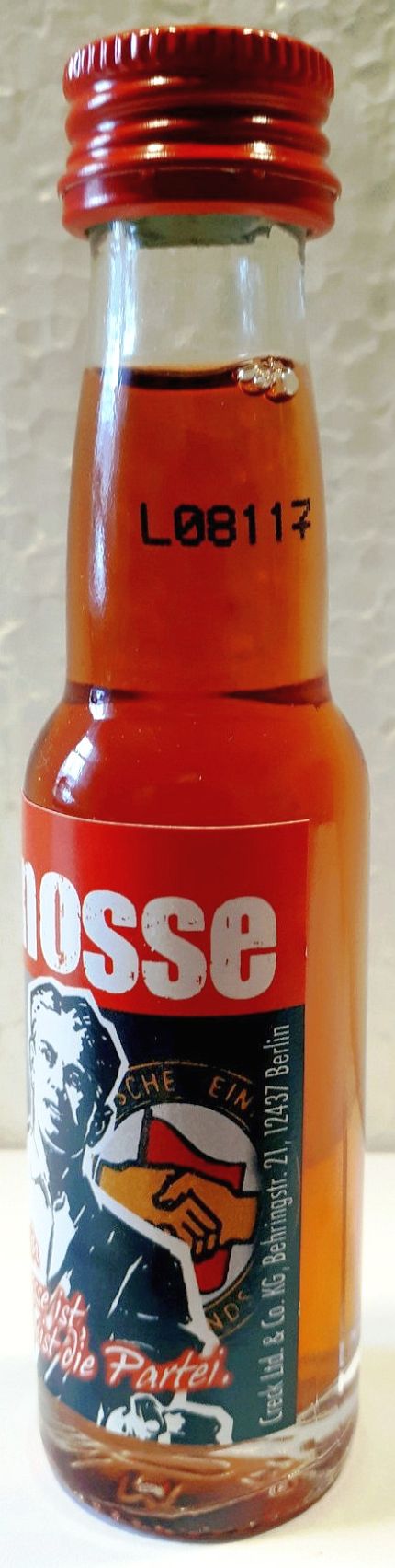 Number of Firm.: 12253150 _____Bottle Nr. : 0721020 _NAME : Genosse Menge: _ ALK: INFO.: INFO.: YEAR / Buying : GRÖßE [SIZE] : (S1-77-0) - (S2-?) - (S3-?)