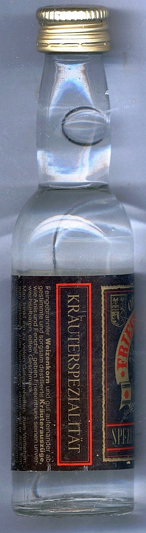 14283000 _____Bottle Nr. : 0204440 _Inhalt: FRIESENTRUNK Menge: 4cl. __ALK: 40 Vol.% INFO.: YEAR / Buying : GRÖßE [SIZE] : (S1-77-0) - (S2-?) - (S3-?) |
