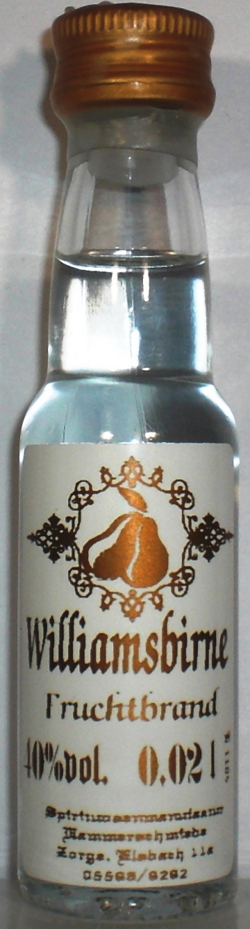 Number of Firm.: 17103100 _____Bottle Nr. : 0542630 _NAME : Williamsbirne Menge: 0,02l _ ALK: 40% vol. INFO.: YEAR / Buying : GRÖßE [SIZE] : (S1-77-0) - (S2-?) - (S3-?)