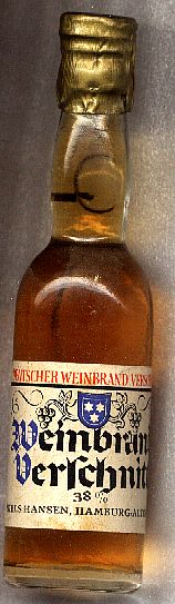 17104500 _____Bottle Nr. : 0321640 _Inhalt: Weinbrand Verschnitt Menge: [40ml] __ALK: 38% REMARK: DEUTSCHER WEINBRAND VERSCHNITT REMARK: YEAR / Buying : ____GRÖßE [SIZE] : [PRICE] (X) __Kategorie: |