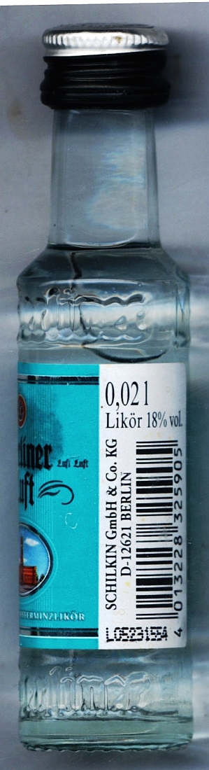 Number of Firm.: 28122500 _____Bottle Nr. : 0721031 _NAME : Berliner Luft Menge: 0,02l _ ALK: 18% vol. INFO.: L05231554 YEAR / Buying : (S1-X) - (S2-?) - (S3-?)