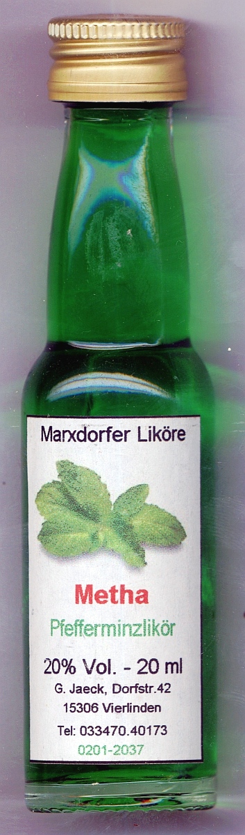 19101800 _____Bottle Nr. : 0341830 _Inhalt: Mentha Menge: 20ml _ ALK: 20% Vol. INFO.: INFO.: INFO.: YEAR / Buying : 2013 ______GRÖßE [SIZE] : [PRICE] __KAT1: (S1-X) - (S2-?) |