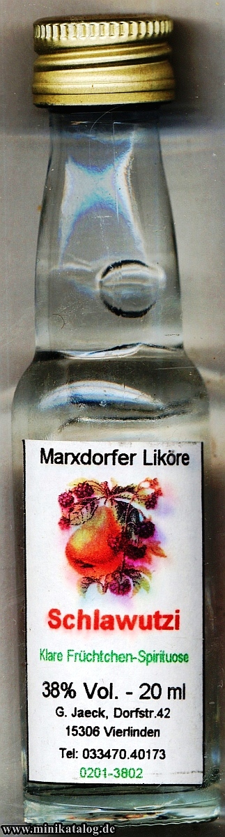 Number of Firm.: 19101800 _____Bottle Nr. : 0473040 _NAME : Schlawutzi Menge: 20ml _ ALK: 38% Vol. INFO.: Klare Früchtchen YEAR / Buying : (S1-X) - (S2-?) - (S3-?)