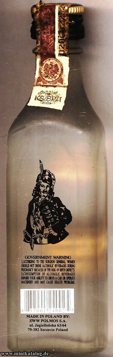 Number of Firm.: 25246000 _____Bottle Nr. : 0304440 _Inhalt: KRAKUS VODKA Menge: [0,05l] __ALK: EIGHTY PROOF INFO.: INFO.: YEAR / Buying : ______GRÖßE [SIZE] : [PRICE] __Kategorie: (X) |