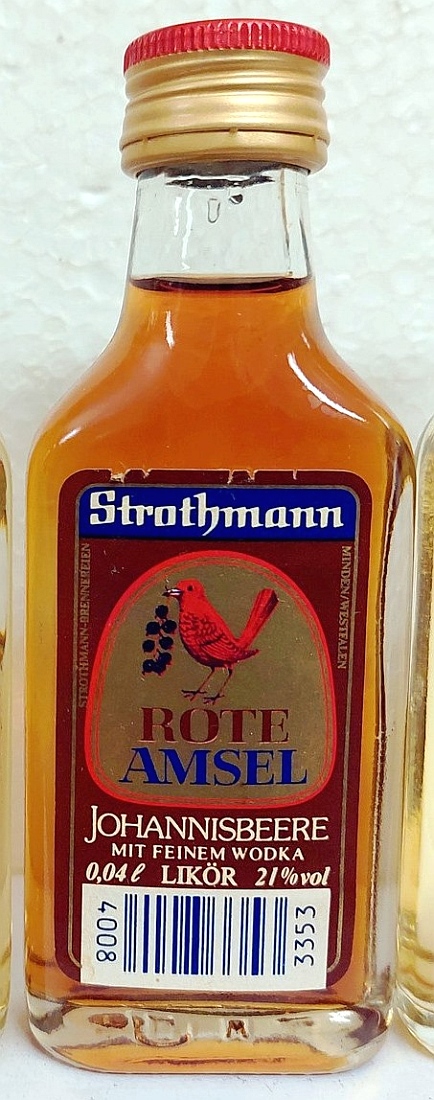 28298000 _____Bottle Nr. : 0433860 _Inhalt: Rote Amsel Menge: 0,04l _ ALK: 21% vol INFO.: INFO.: INFO.: YEAR / Buying : ______GRÖßE [SIZE] : [PRICE] __KAT1: (S1-X) - (S2-?) |