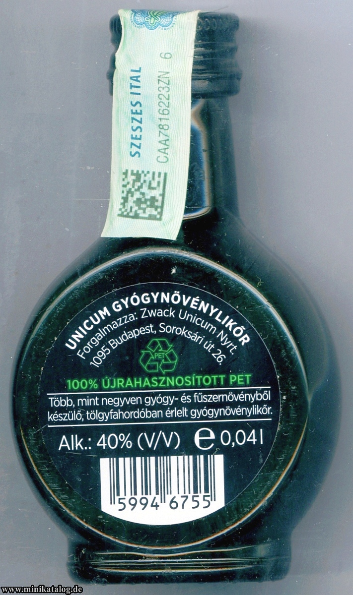 Number of Firm.: 36331100 _____Bottle Nr. : 0503820 _NAME : UNICUM Menge: 0,04l _ ALK: 40% INFO.: - PLASTIK - YEAR / Buying : GW BERLIN - 2026 (S1-X) - (S2-?) - (S3-?) | |
